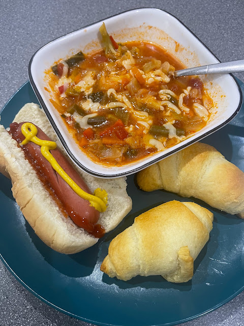 The salad was just a romaine heart chopped up with pepper and a carrot. The dressing was Skinny Girl Poppyseed dressing which wasn't very good. I haven't been able to find ANY salad dressings I like lately, they all taste too processed. I think I need to start making my own.